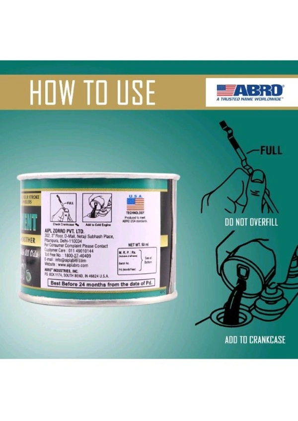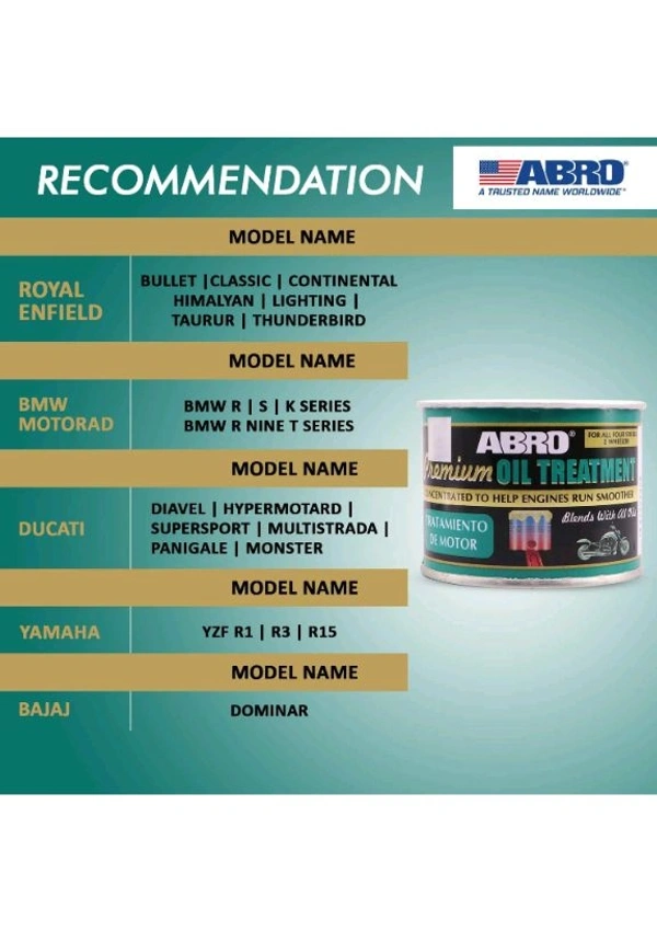 ABRO OT-511-B-T 4 Stroke Bike Motorcycle Petrol Oil Treatment for Engine Lubrication, Friction & Sound Reduction (50 ml)