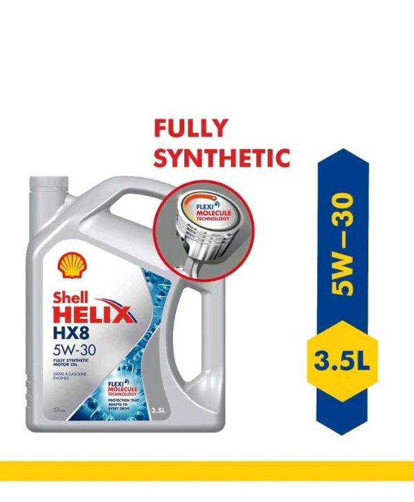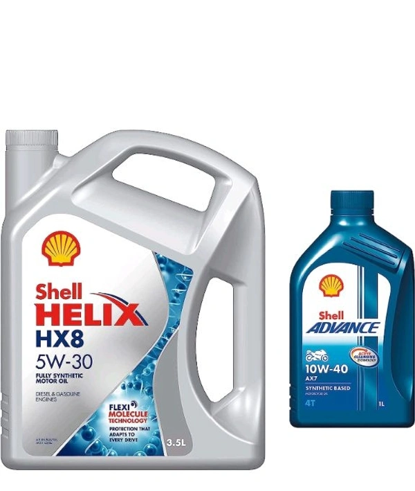 Shell Helix HX8 5W-30 API SN Plus Fully Synthetic Engine Oil for Petrol, Diesel & CNG Cars (3.5 L), medium & Advance AX7 4T 10W-40 API SM Synthetic Technology Motorbike Engine Oil (1L)