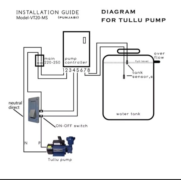 Vahra Technology Semi Automatic Water Level Controller for Direct Switch Mcb Type Starter, vt20-MS